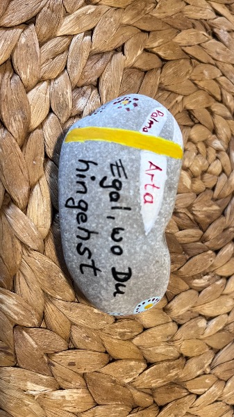 Wanderstein, gemalt am 18.2. in Campanet, freut sich auf Weiterreise durch die Welt und bringt allen Findern Glück!
