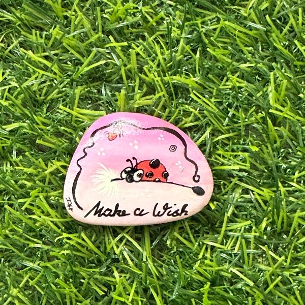 Hi, my name is Doro, I live in Wiesbaden and I paint hiking stones. I´m glad you reported your find here. You can keep the stone or send it on a new, adventurous journey. I would be very happy about a photo of the place where it was found and a few words. Best regards Doro ❤️